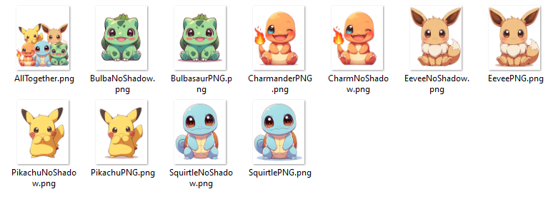 Large Group Image Included: In addition to the individual files, the set includes a large group picture of all the Pokémon together. This image is sized at 4500×5000 pixels, perfect for bigger projects or as a centerpiece for your designs.